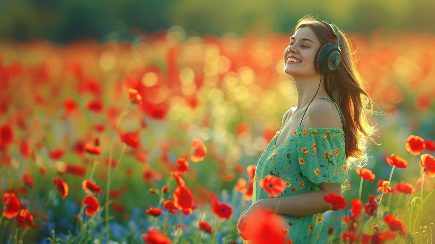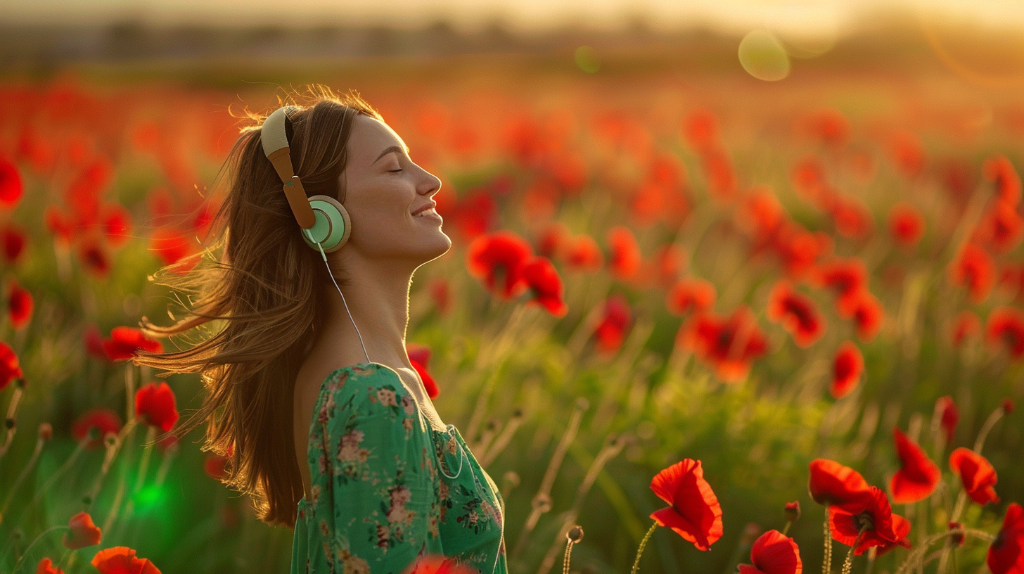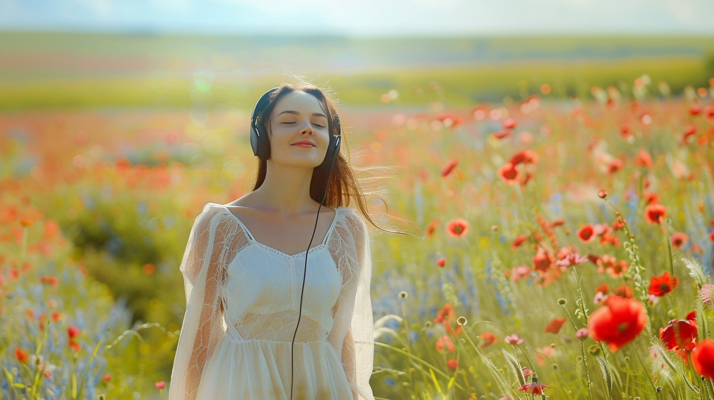 Immerse yourself in nature and tranquility: Imagine yourself lying on a soft blanket in the middle of a vast wildflower field. The sun is warm on your skin, and a gentle breeze rustles through the flowers,