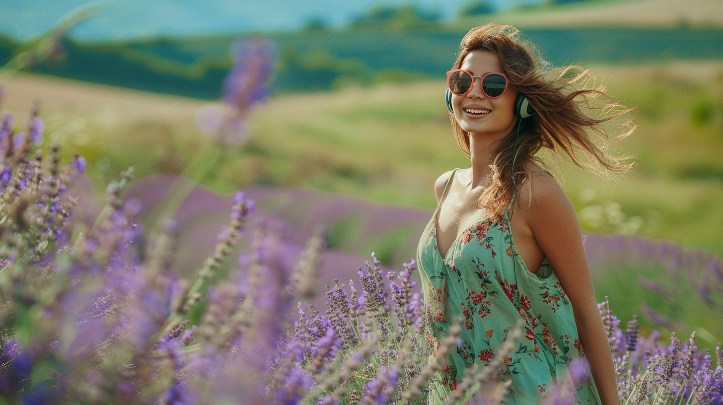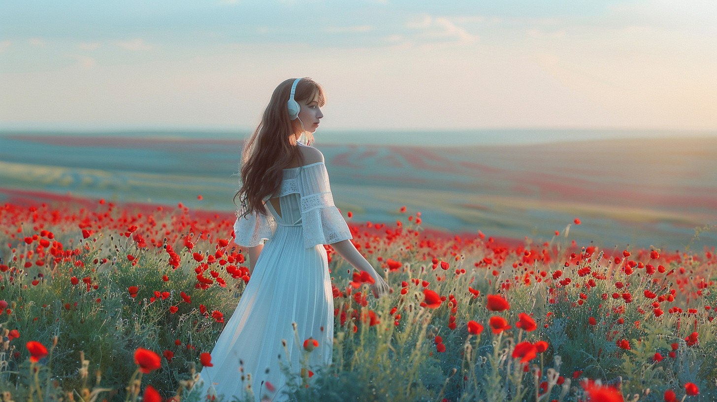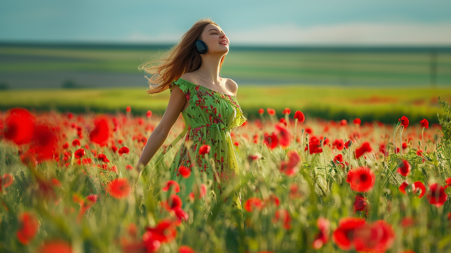 Immerse yourself in nature and tranquility: Imagine yourself lying on a soft blanket in the middle of a vast wildflower field. The sun is warm on your skin, and a gentle breeze rustles through the flowers,